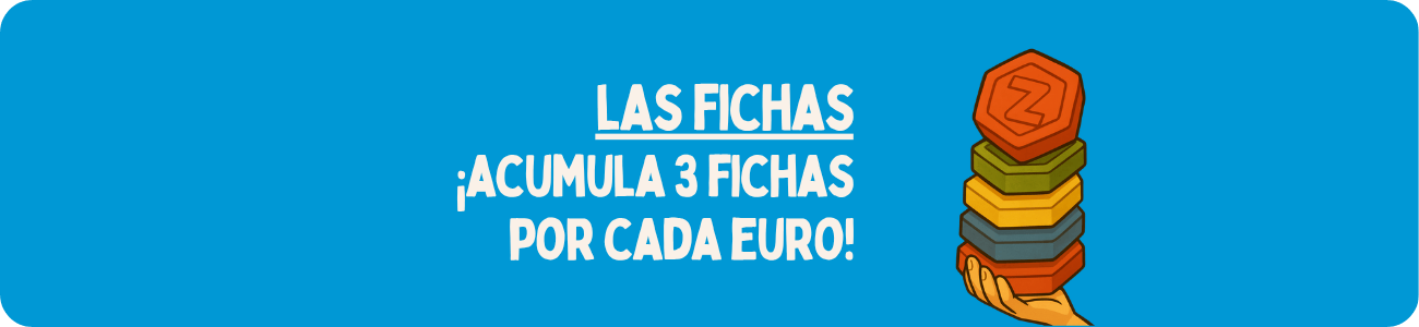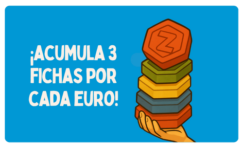 - Recibes 3 Fichas por cada 1 euro gastado completo.
